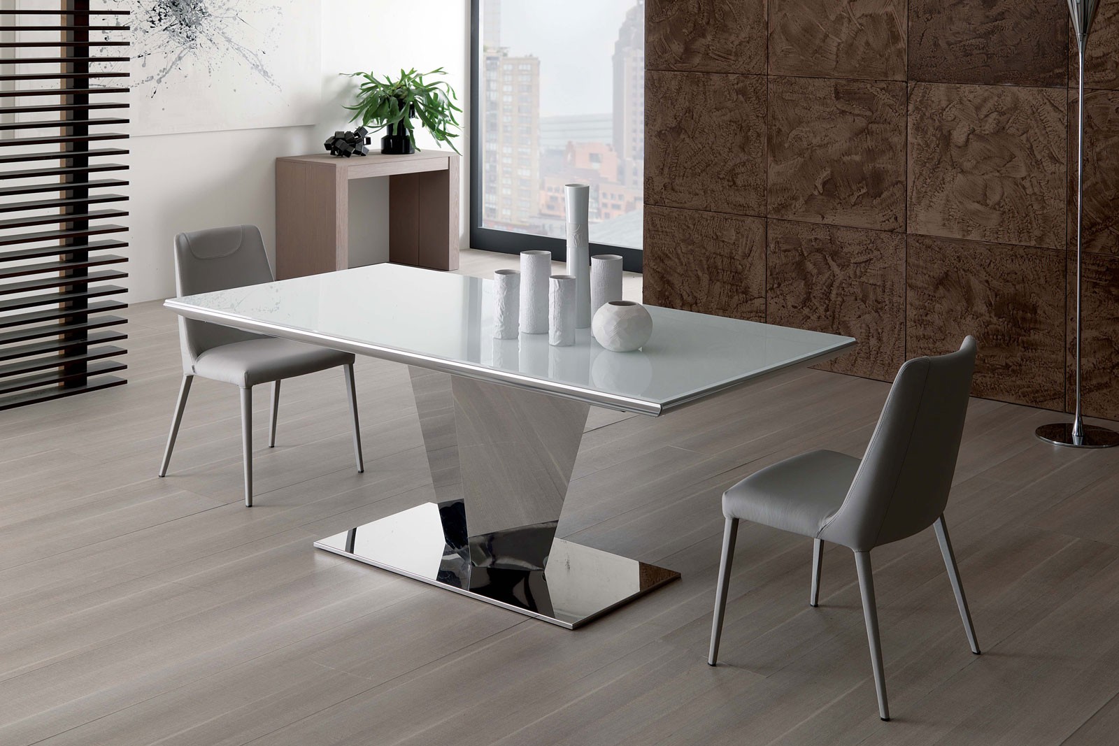 Cultivate a contemporary aesthetic in your living room with this distinctive dining table with hide-away sliding extension.