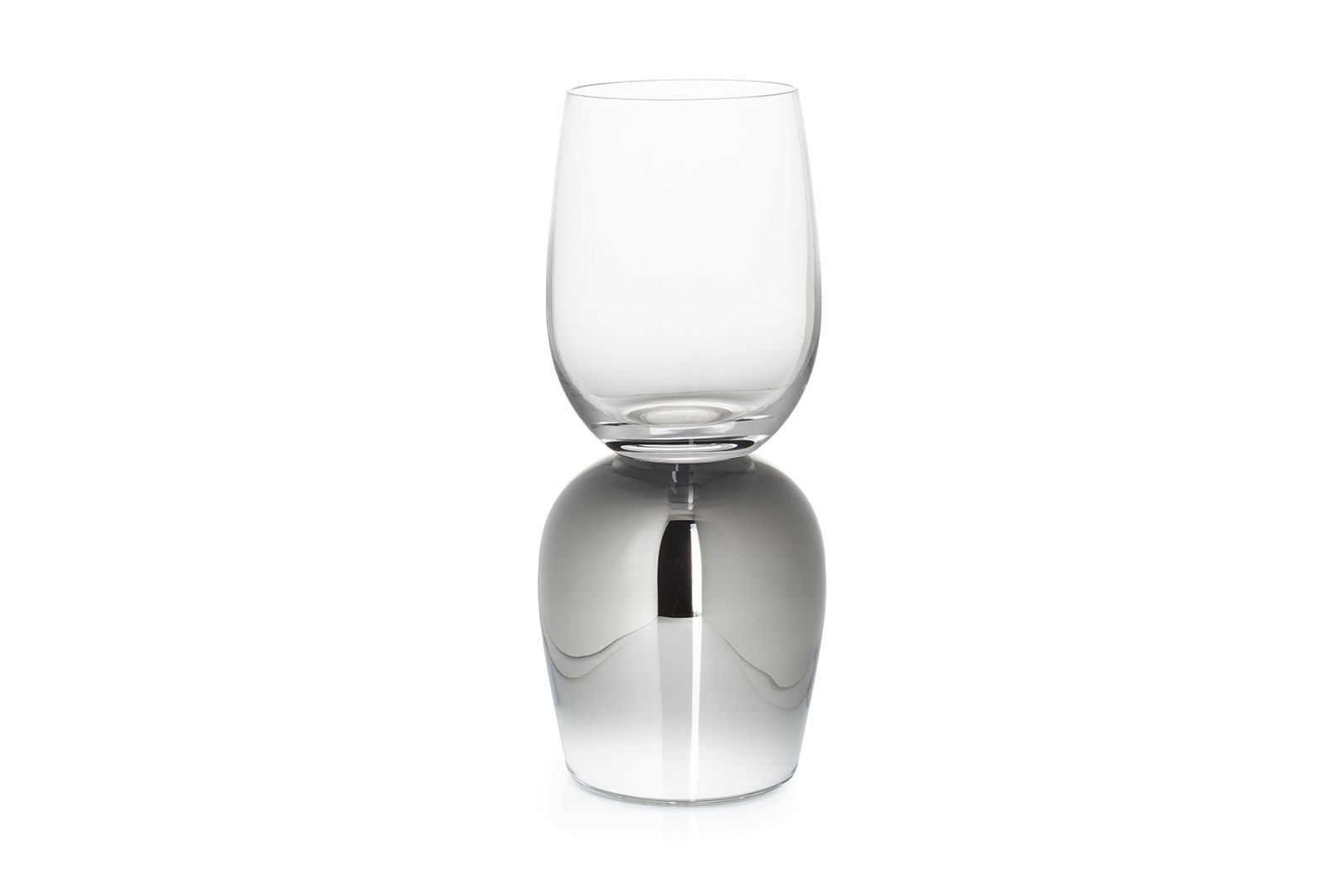 The vases of this collection are there to be matched or assembled, played with, turned upside down to change into photophores or even glass lanterns when they are not filled with flowers. All the glasses follow the same principle, and so the champagne flute, once bottom up, becomes a tumbler while the white wine glass turns into a coffee cup when on its head.