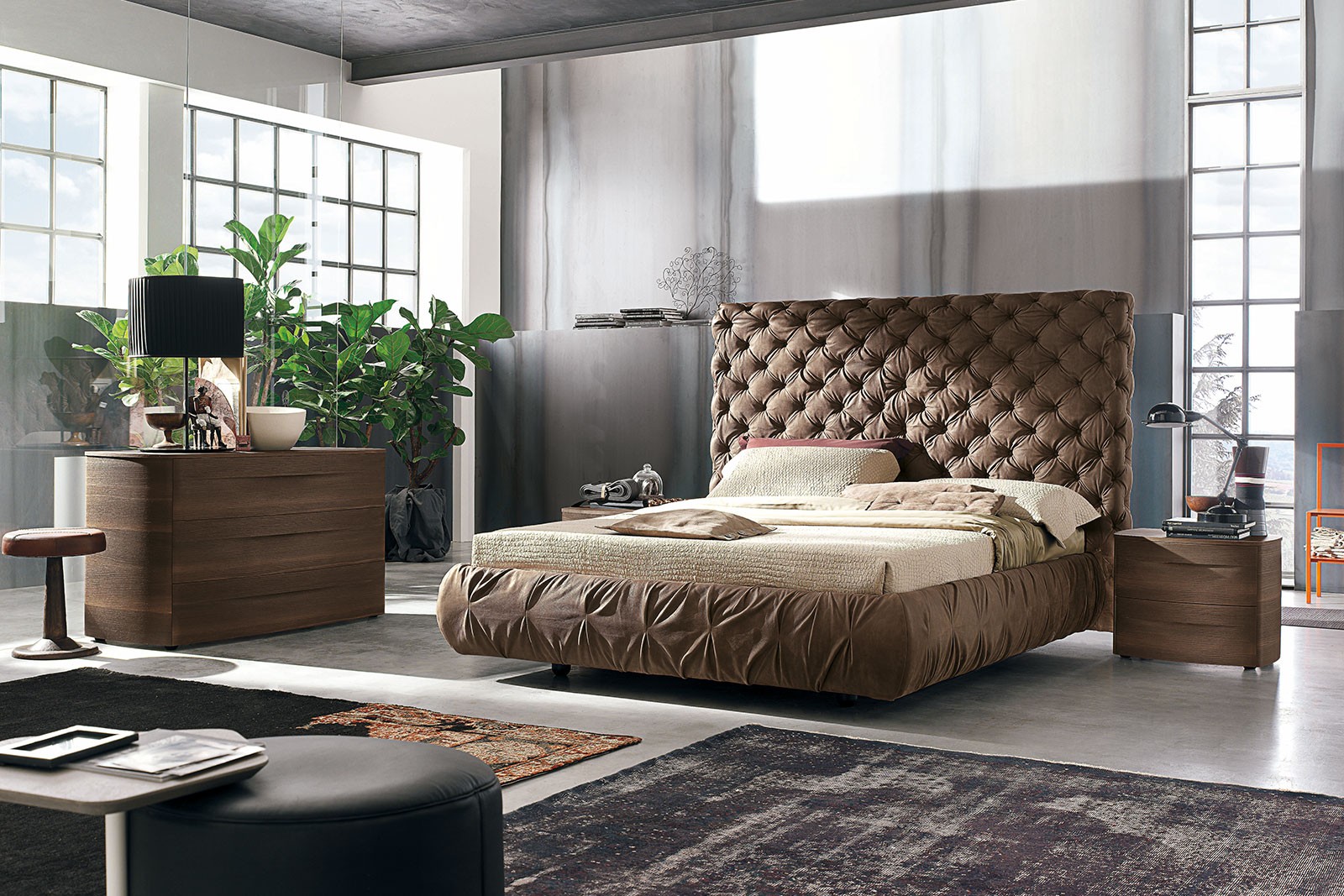 Double bed with headboard and bed frame padded and upholstered with capitonne quilting. The stunning yet subtle details of this headboard make it a piece that never goes out of style.