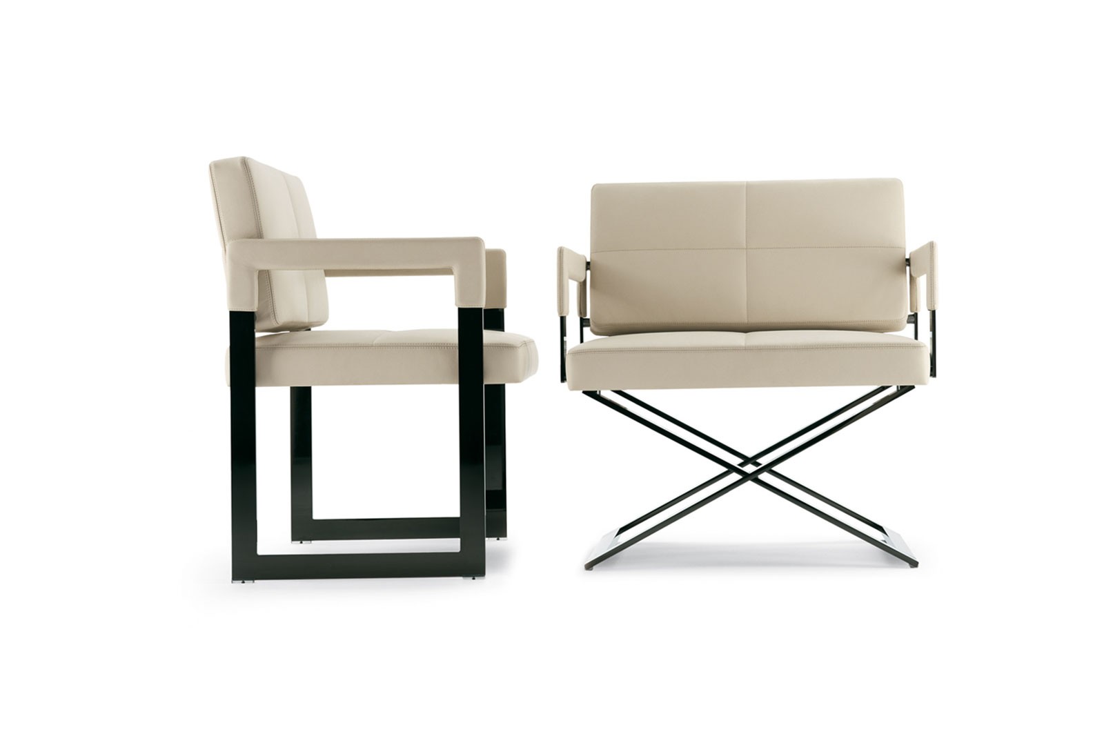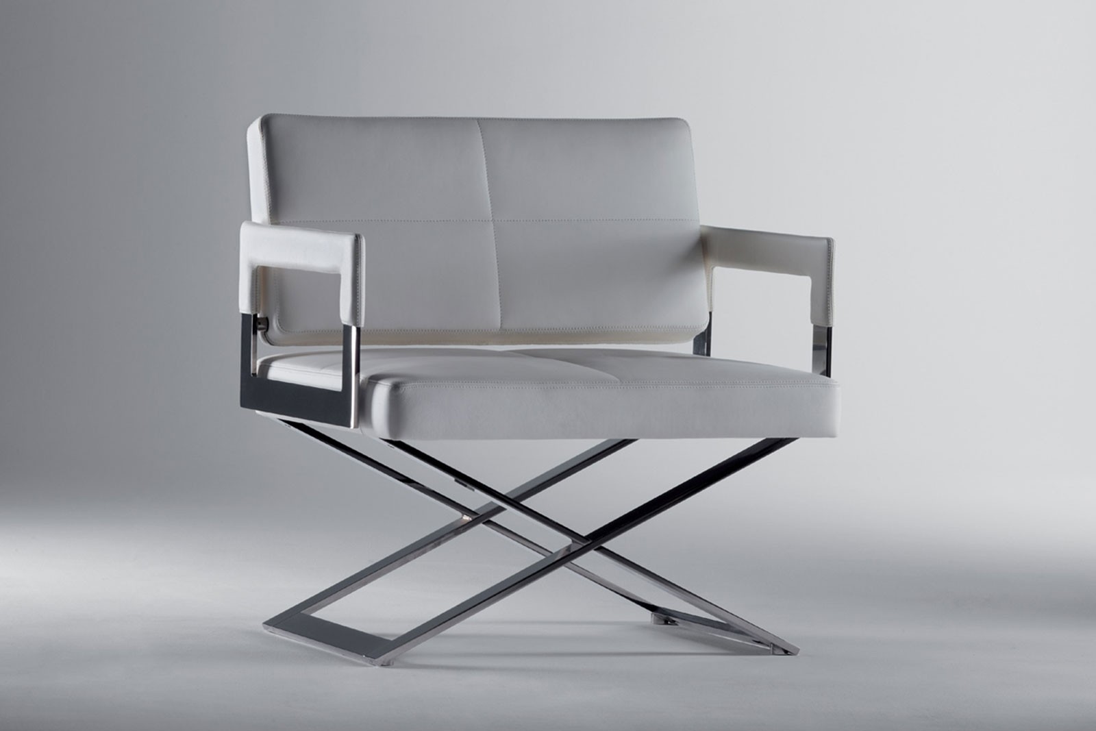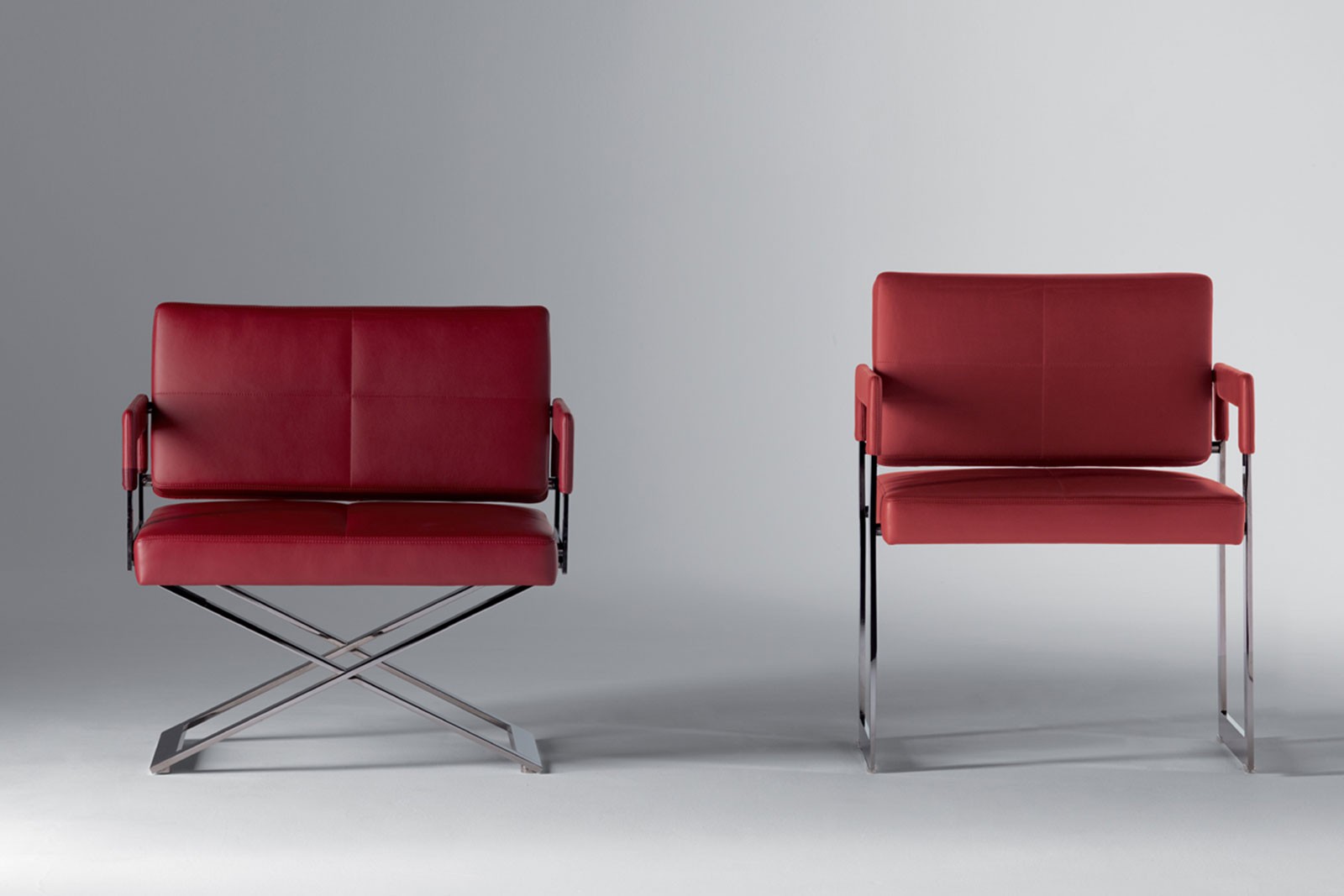 A re-interpretation of the classic director’s chair. A clear-cut, linear crossover frame forms an X which supports ...