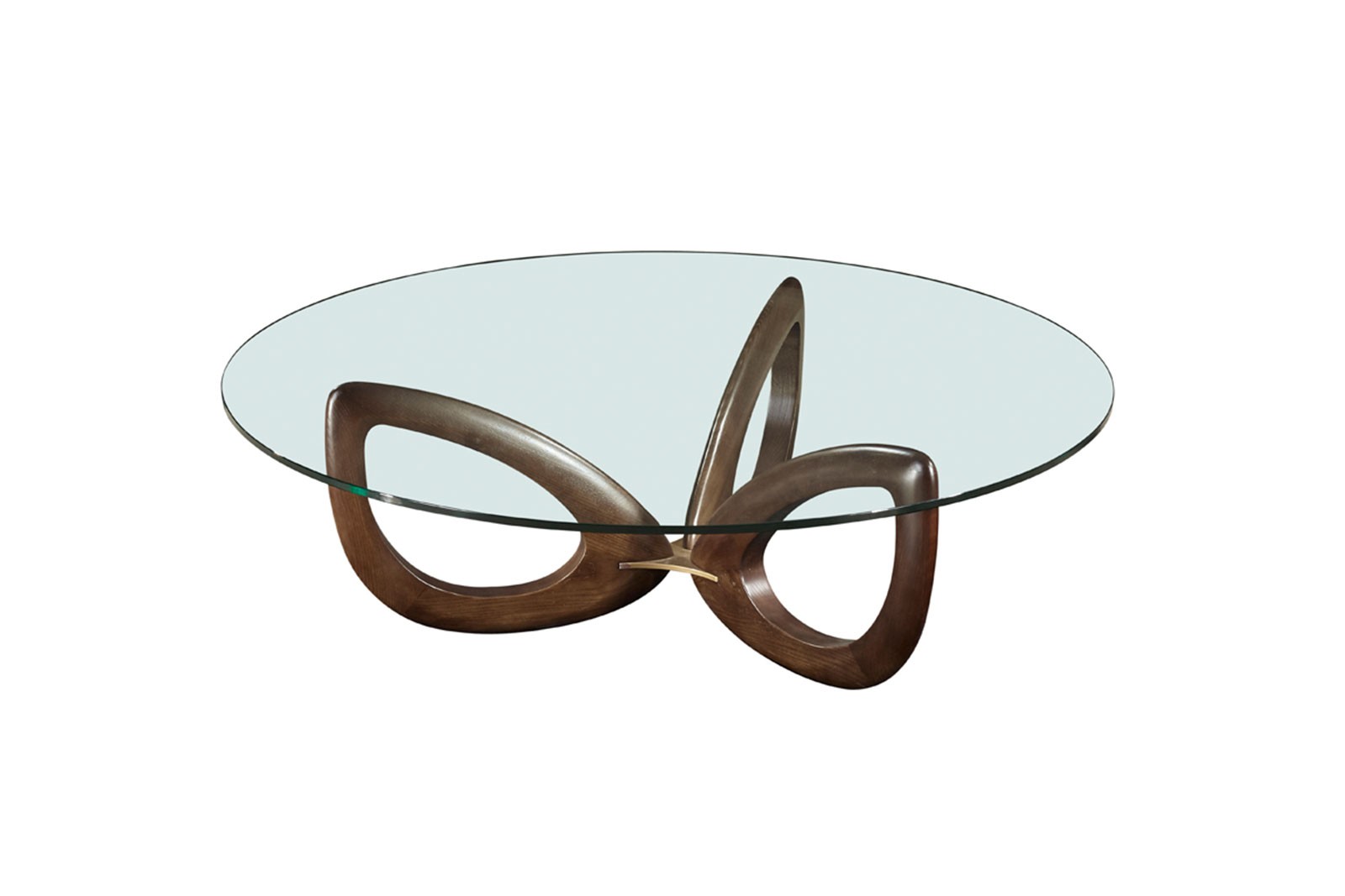 Stunning low coffee table in contemporary round design, polished to perfection, inspires you to achieve a modern living room setup.