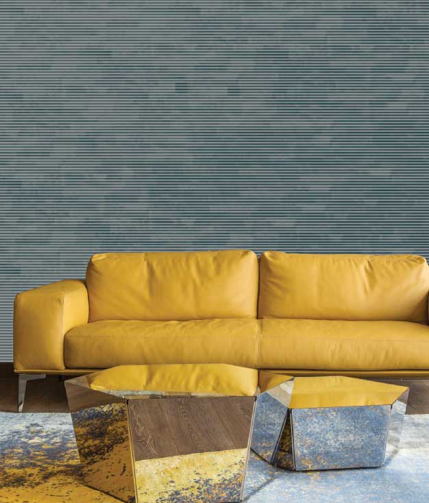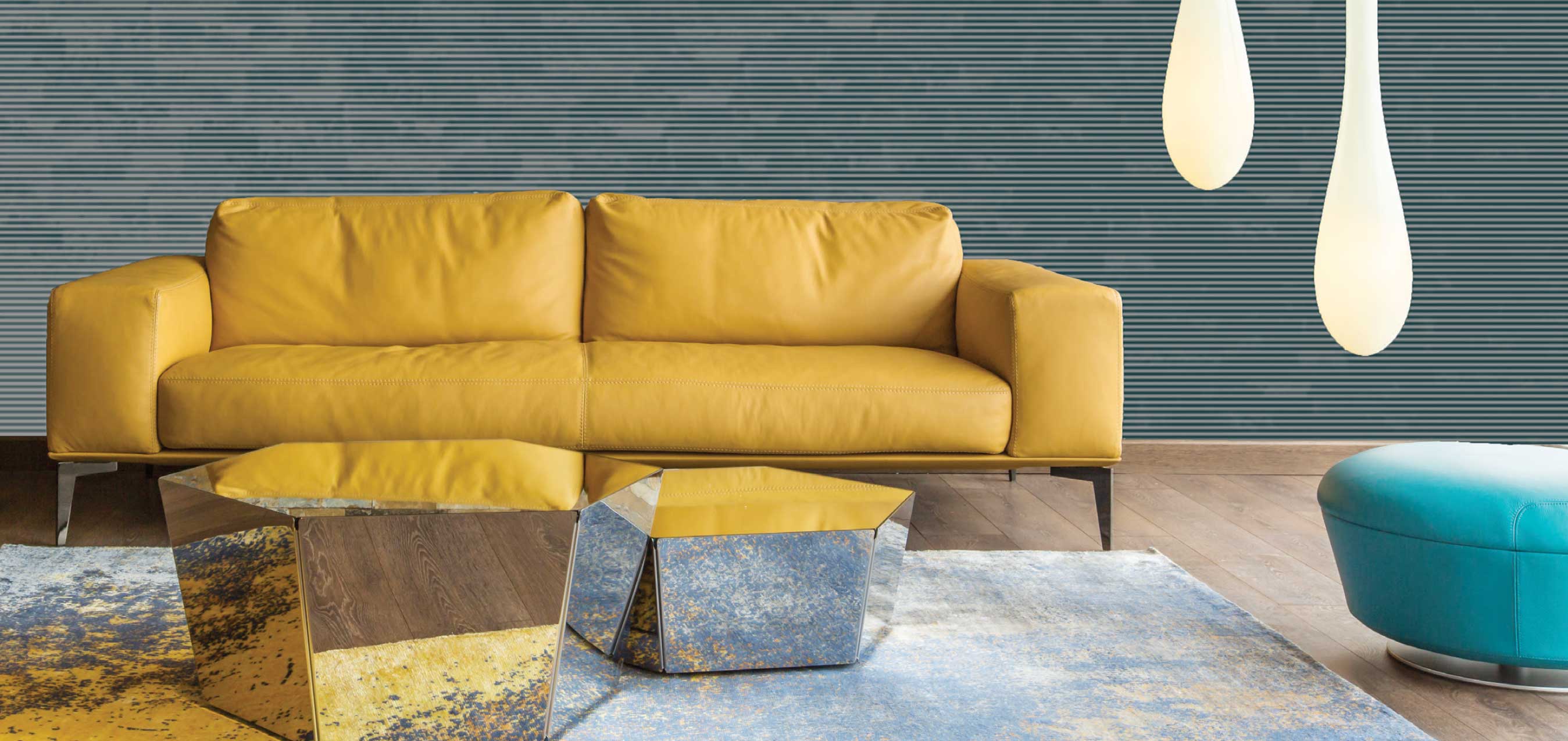 Designed for comfort and enveloped in leather, this is a collection from 20th Anniversary by Stanley catering to the premium category of furniture. Crafted in shades of blue, grey, yellow and wood this setting renders a very vibrant feel to an interior.